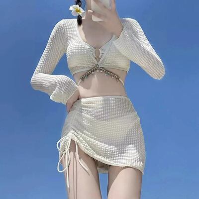 24 水着 4点セット ビキニ 韓国ビキニ 長袖 ハイウエスト スイムウェア 美脚 脚長 スタイルアップ 大人女子 韓国系ファッション レディース 海