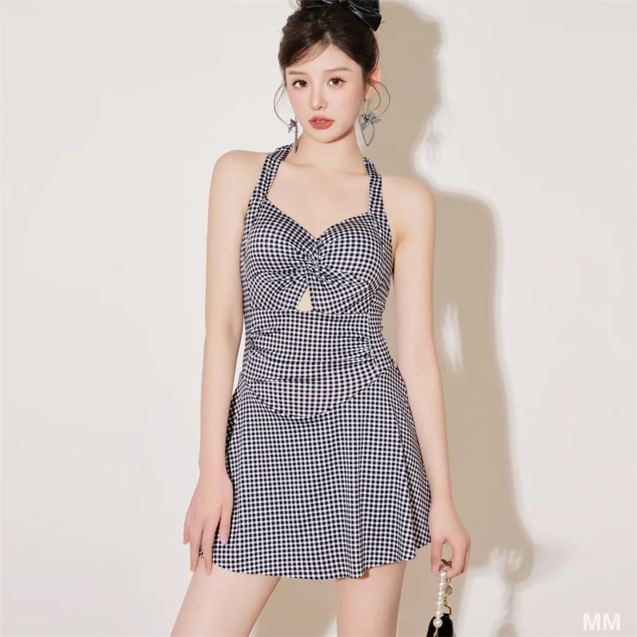 ワンピースレディースビキニセット,アクセント付きワンピース水着,カワイイスタイル,市松模様のスカート,ビーチウェア,夏,2023 韓国系水着 セパレート水着 ワンピース水着 T240626154459_01 | coolcoool