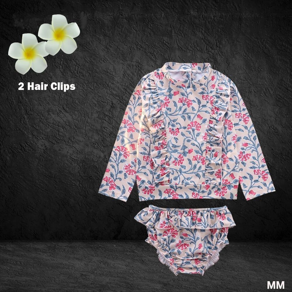 女の子のためのヴィンテージフローラルビキニ,韓国スタイルの水着,日焼け止め付き長袖フリルフラワー水着,ハイウエスト水着 韓国系水着 セパレート水着 ワンピース水着 T240626154611_14 | coolcoool