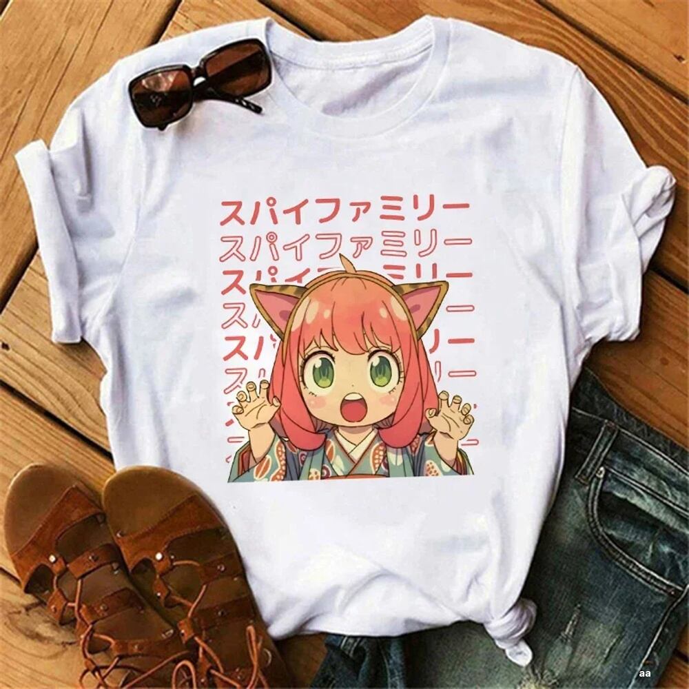女性のためのスパイXファミリーアニメTシャツ,日本の原宿ファッション,半袖Tシャツ,カワイイラウンドネックTシャツ ボトム ボトムス ズボン T240619131137_28