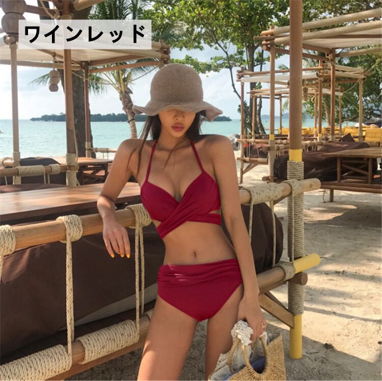 旅行 温泉 水着 ビキニ 2点セット バックシャン ワイヤーあり 無地 シンプル★★ 水着 レディース おしゃれ ビーチ ビキニ リゾート プール 体型カバー スリム 可愛い インスタ映え セパレート 露出控えめ 盛れるハイウエスト 韓国 日焼け対策 競泳 スイムウェア日焼け防止 スタイルアップ 着痩せ | coolcoool