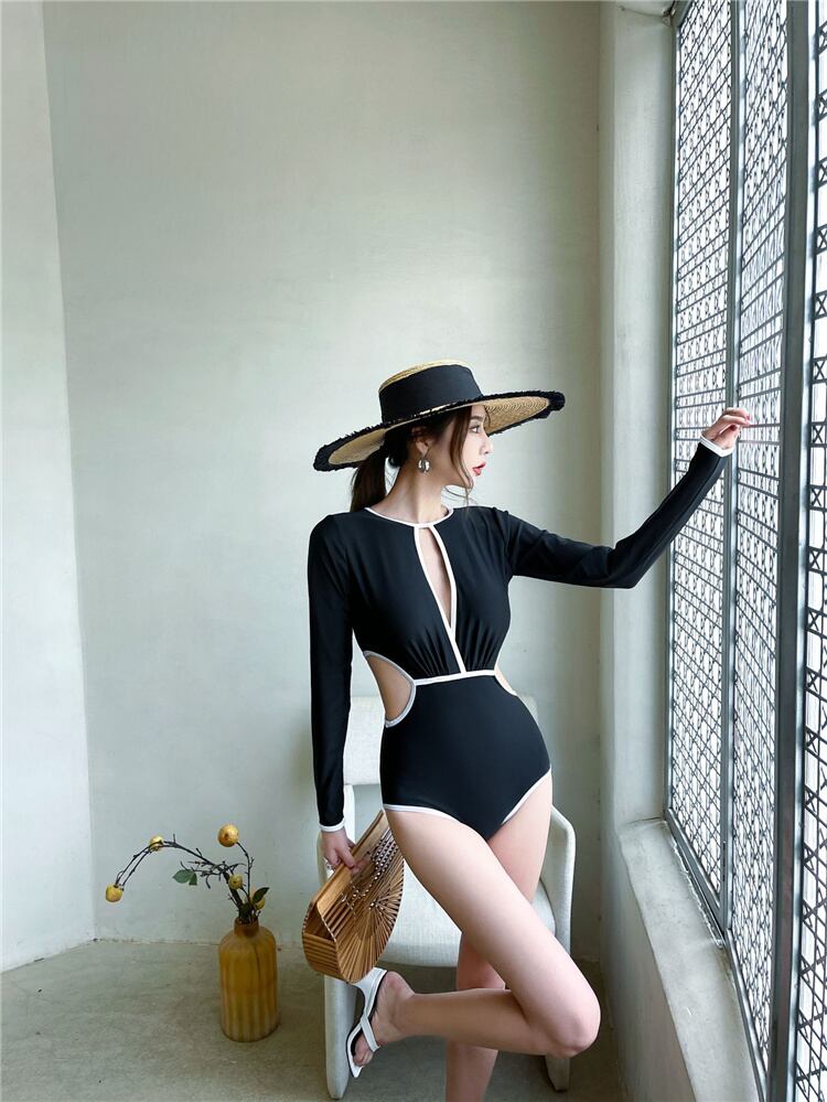 快適である 水着 カジュアル オシャレ オープンウエスト 2022 新作 長袖 黒