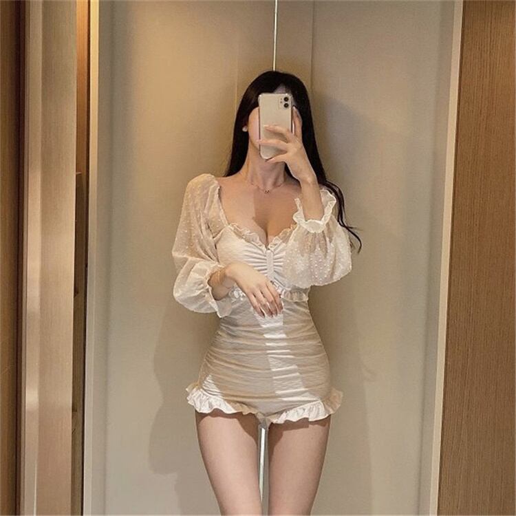 ハイウエスト 薄手 快適である 長袖 レーヨン 背透けて セクシー 温泉 休暇 水着