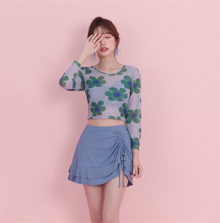 細見えする 温泉 長袖 フラットアングル フローラル 水着 3点セット 快適である★★ 水着 レディース おしゃれ ビーチ ビキニ リゾート プール 体型カバー スリム 可愛い インスタ映え セパレート 露出控えめ 盛れるハイウエスト 韓国 日焼け対策 競泳 スイムウェア日焼け防止 スタイルアップ 着痩せ | coolcoool