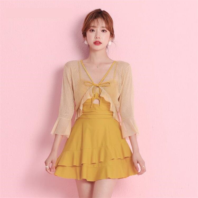 水着 カジュアル 温泉 気質 長袖 ピュアカラー ベアトップ