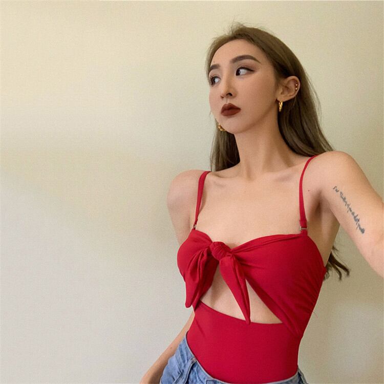 レトロ スリング 水着 胸パッド付き セクシー コンビネゾン トレンド