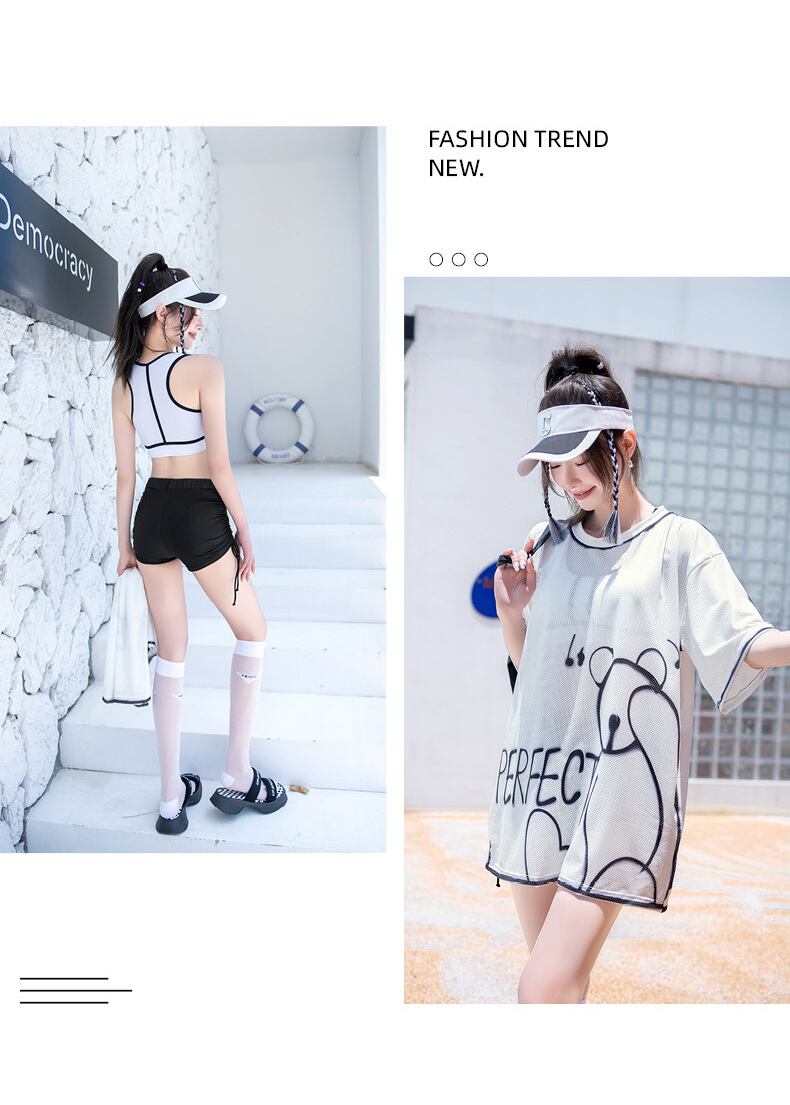 水着 半袖トップス 3点上下セット セパレート レディース シンプル★★ 水着 レディース おしゃれ ビーチ ビキニ リゾート プール 体型カバー スリム 可愛い インスタ映え セパレート 露出控えめ 盛れるハイウエスト 韓国 日焼け対策 競泳 スイムウェア日焼け防止 スタイルアップ 着痩せ | coolcoool
