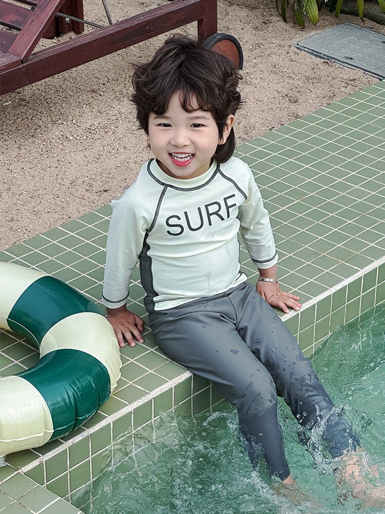 シンプルなデザインで子供スポーティスタイルにUV対策も欠かさない水着です。