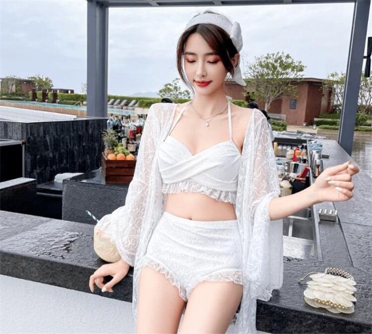 ビキニ 3点セット レース セクシー ボクサー 長袖 スパ お出かけ ブラウス 水着 デザインセンス