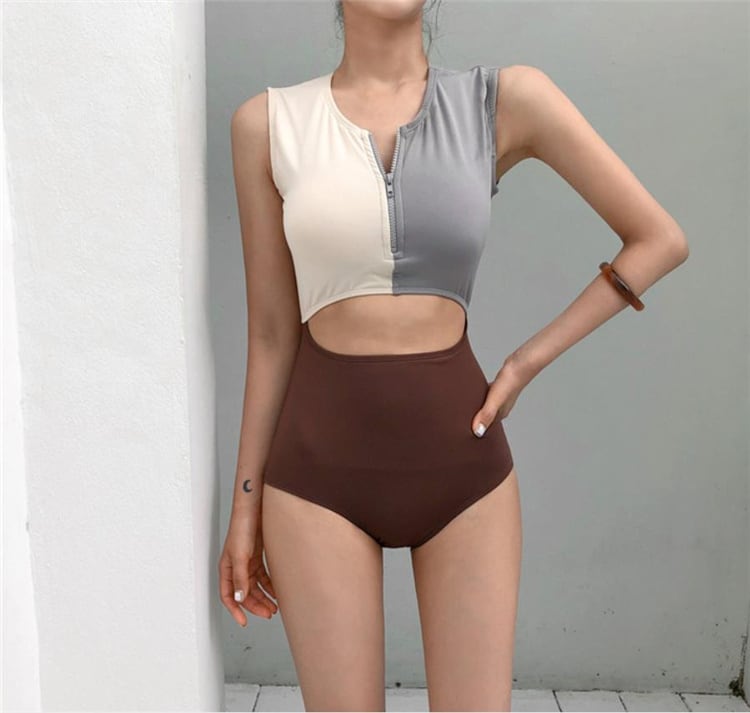 韓国ファッション 小さな香りの風 カラーマッチング ジッパー 透かし彫り ンビネゾン 温泉 水着 女性 簡約★★ 水着 レディース おしゃれ ビーチ ビキニ リゾート プール 体型カバー スリム 可愛い インスタ映え セパレート 露出控えめ 盛れるハイウエスト 韓国 日焼け対策 競泳 スイムウェア日焼け防止 スタイルアップ 着痩せ | coolcoool