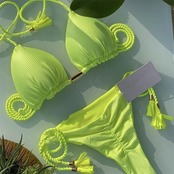 (7色) 無地編組水着多色ビキニツーピーススーツ特別な生地ブラジル女性水着水着 ビキニ Tシャツ T240619003504_12