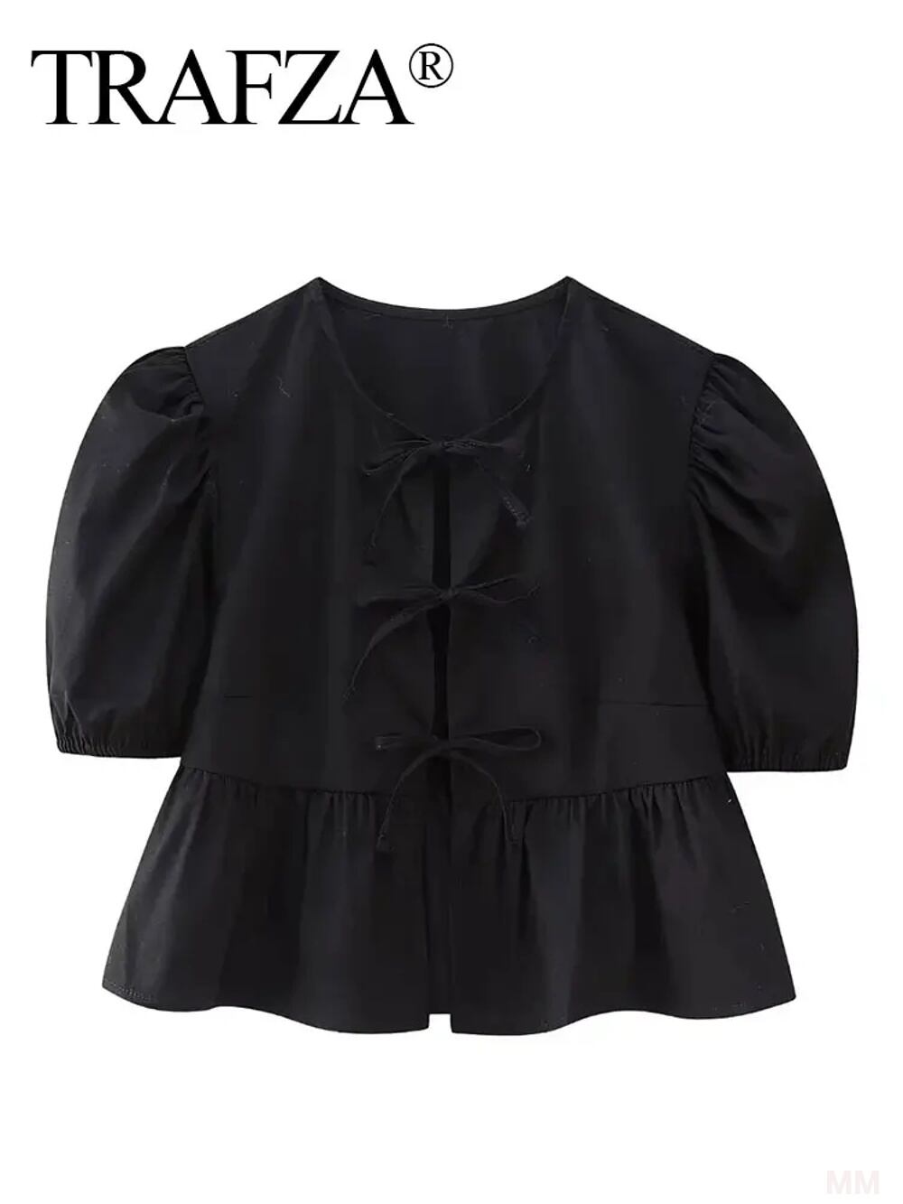 Trafza レディースフローラルプリントボウレースアップブラウス、oネック、半袖シャツ、ヴィンテージ、y2k、女性のシックなトップス、ストリートウェアシャツ、ファッション Tシャツ シャツ T240619142408_04 | coolcoool