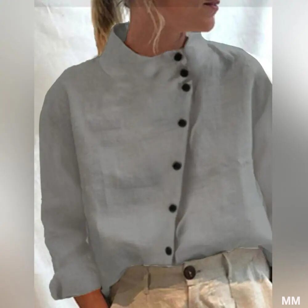 女性用ボタン付きコットンとリネンのスタンドアップカラーTシャツ,快適な半袖シャツ Tシャツ シャツ T240619142442_02