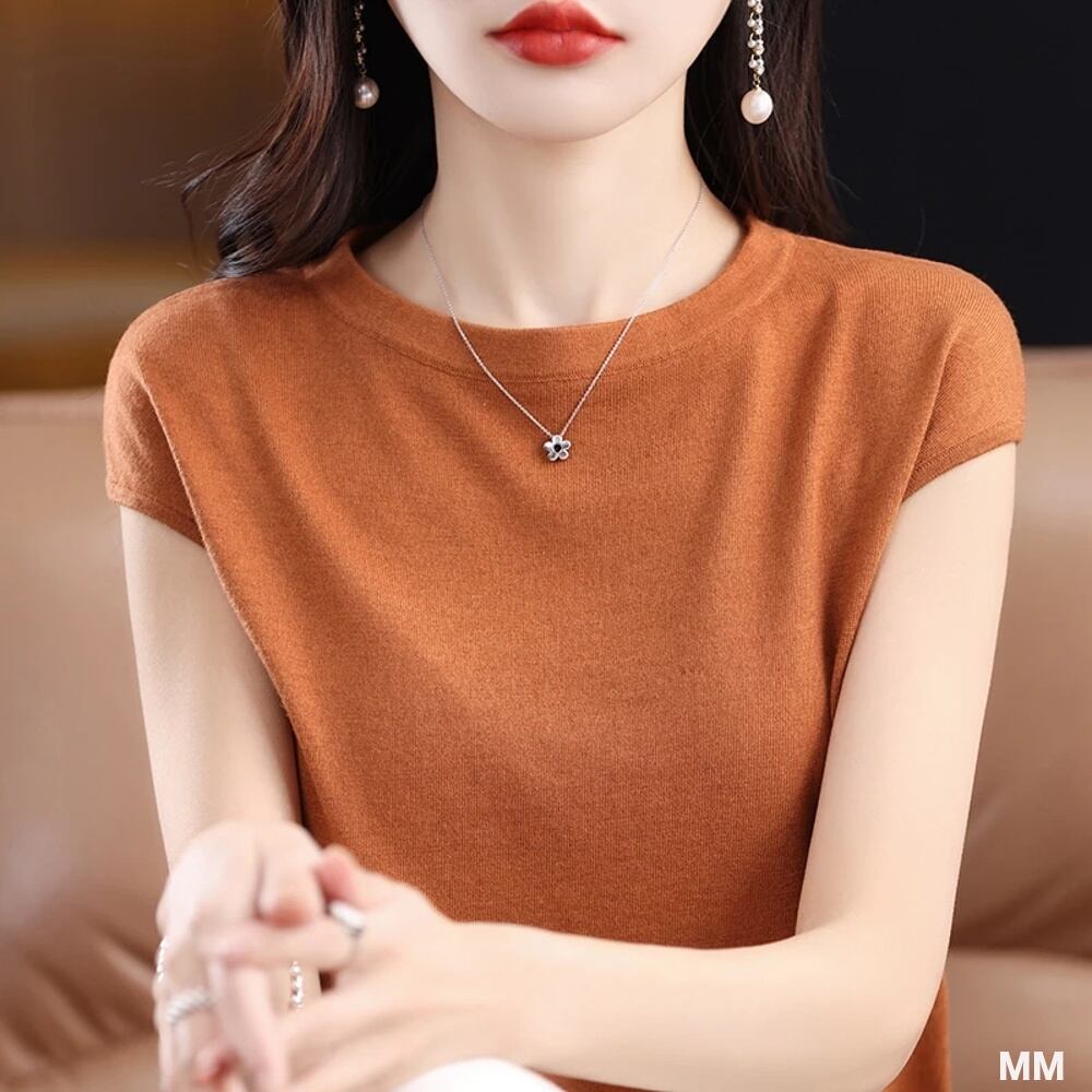 女性用メリノウールニットTシャツ,襟付きプルオーバー,半袖,キルティングウェア,無地,春,夏,新しいファッション,100%, 2024 Tシャツ シャツ T240619142553_06 | coolcoool