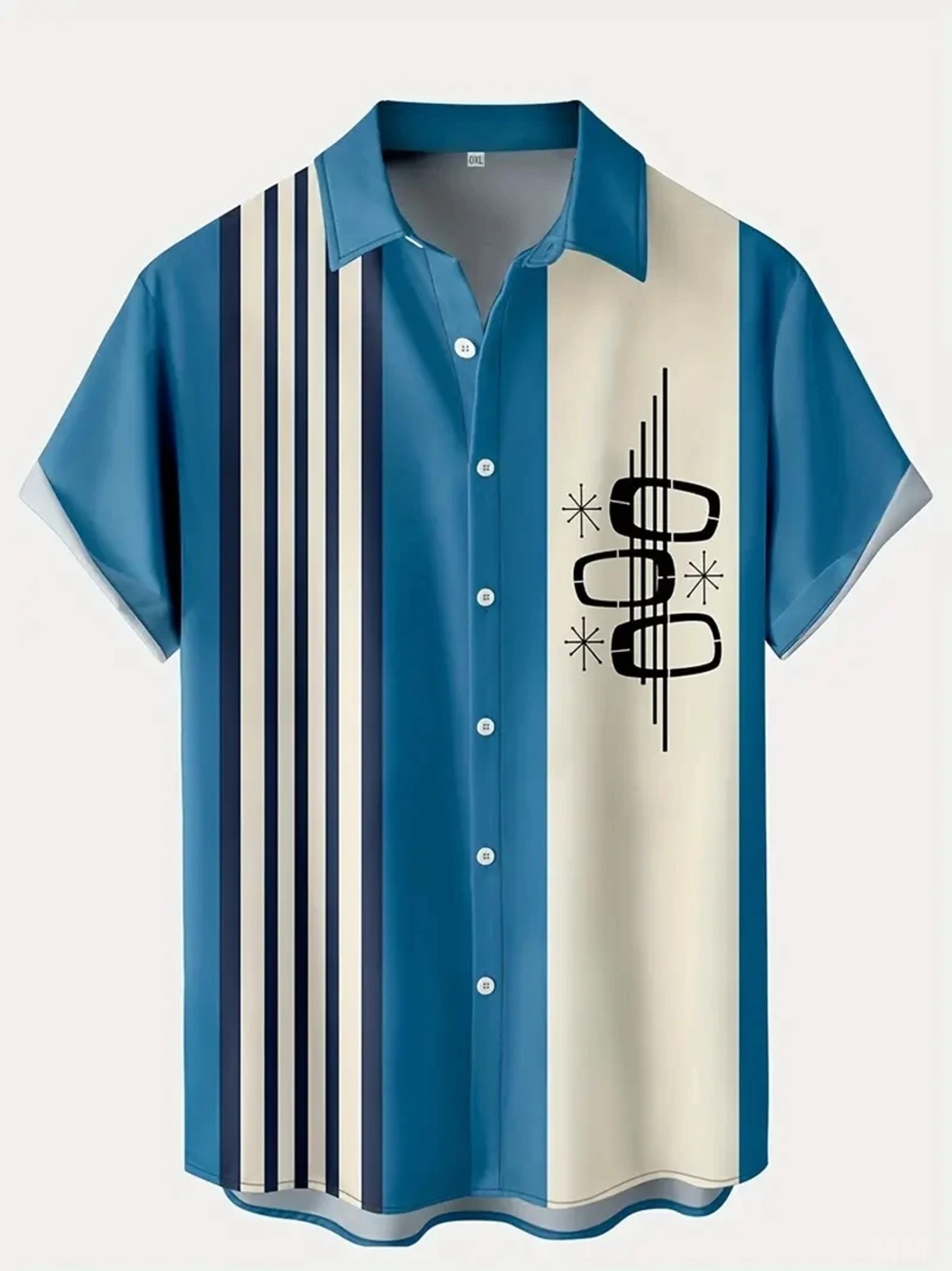 ファッショントップス縞模様のパッチワークデザインプリントシャツデザイン男性女性半袖シャツボタンアップシャツトップス Tシャツ シャツ T240619142829_07