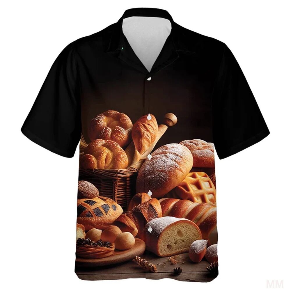 Rinted Pattern:Baking Lover Graphic blouses Hawaiian Beach Shirts for men clothing Casual Vacation Short Sleeve Swim Surfing Lapel Blouse