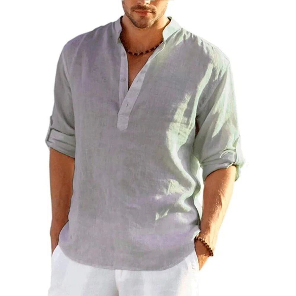 男性用長袖リネンTシャツ,カジュアルでルーズな無地,コットンとリネン,新品 ボトム ボトムス ズボン T240619193523_12