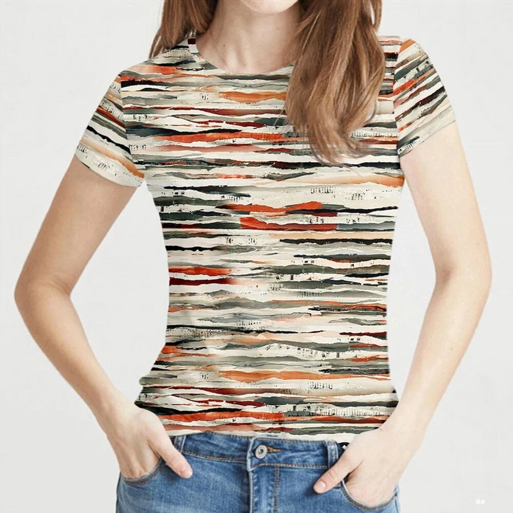 女性用半袖ラウンドネックTシャツ,3DプリントカジュアルTシャツ,レトロファッション,婦人服,春夏 ボトム ボトムス ズボン T240619193659_02