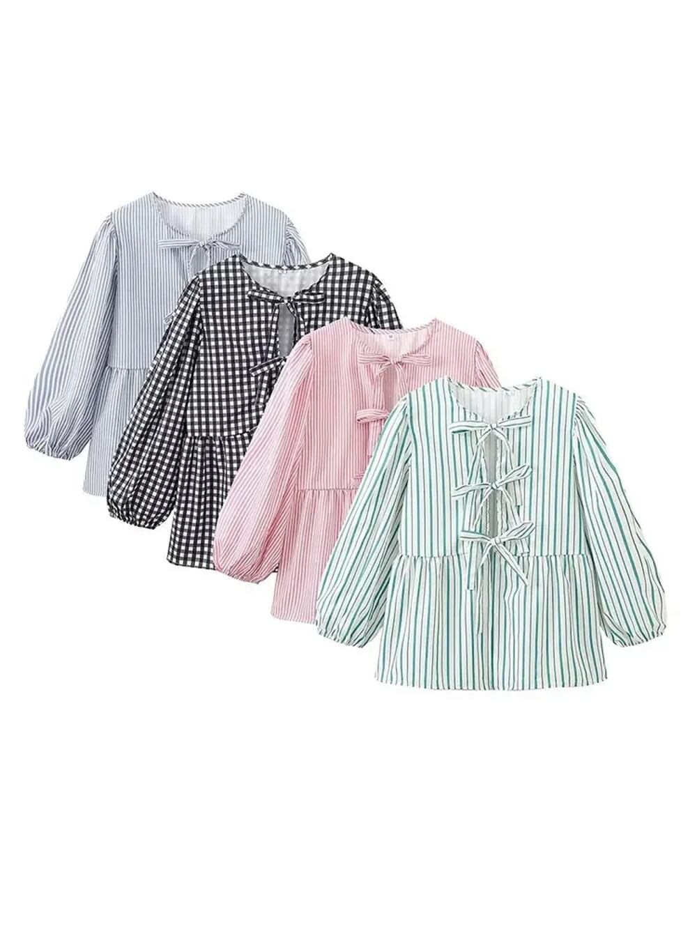 Hh traf 女性のカジュアルなパフ半袖ブラウス、Oネックフリルトップス、レースアップシャツ、弓、単色、エレガントなファッション、夏 ボトム ボトムス ズボン T240619142416_13 | coolcoool