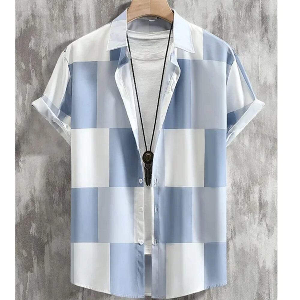 男性と女性のための市松模様の3Dプリントシャツ,半袖,ボタン付きラペル,ストリートウェア,特大ユニセックスウェア ボトム ボトムス ズボン T240619142504_11