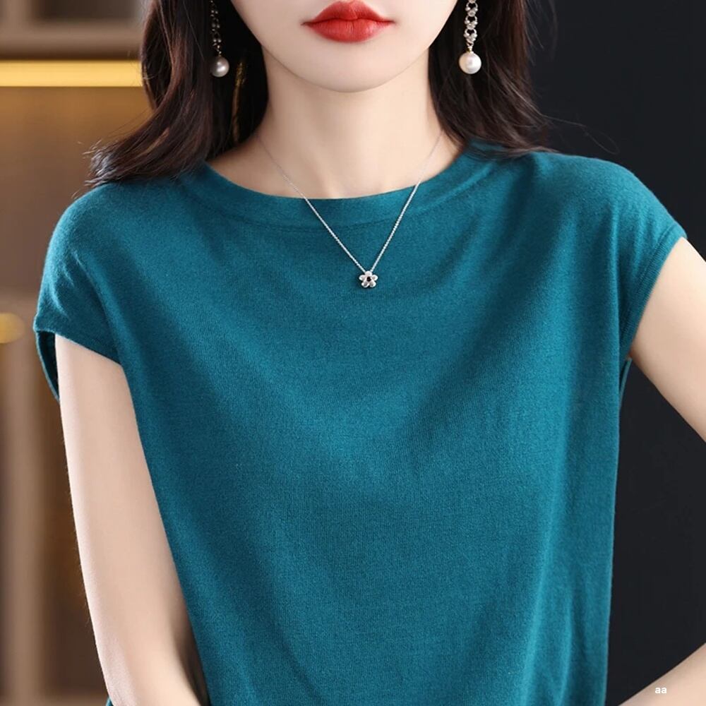 女性用メリノウールニットTシャツ,襟付きプルオーバー,半袖,キルティングウェア,無地,春,夏,新しいファッション,100%, 2024 ボトム ボトムス ズボン T240619142553_03 | coolcoool