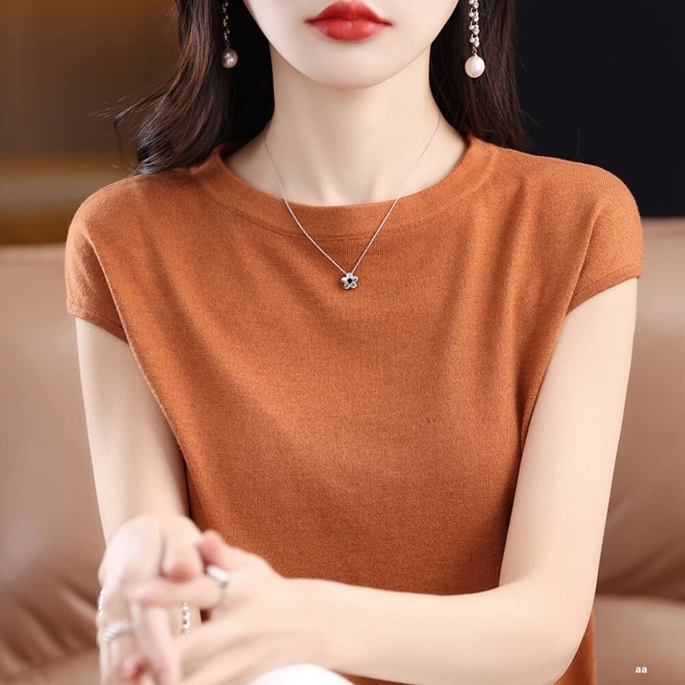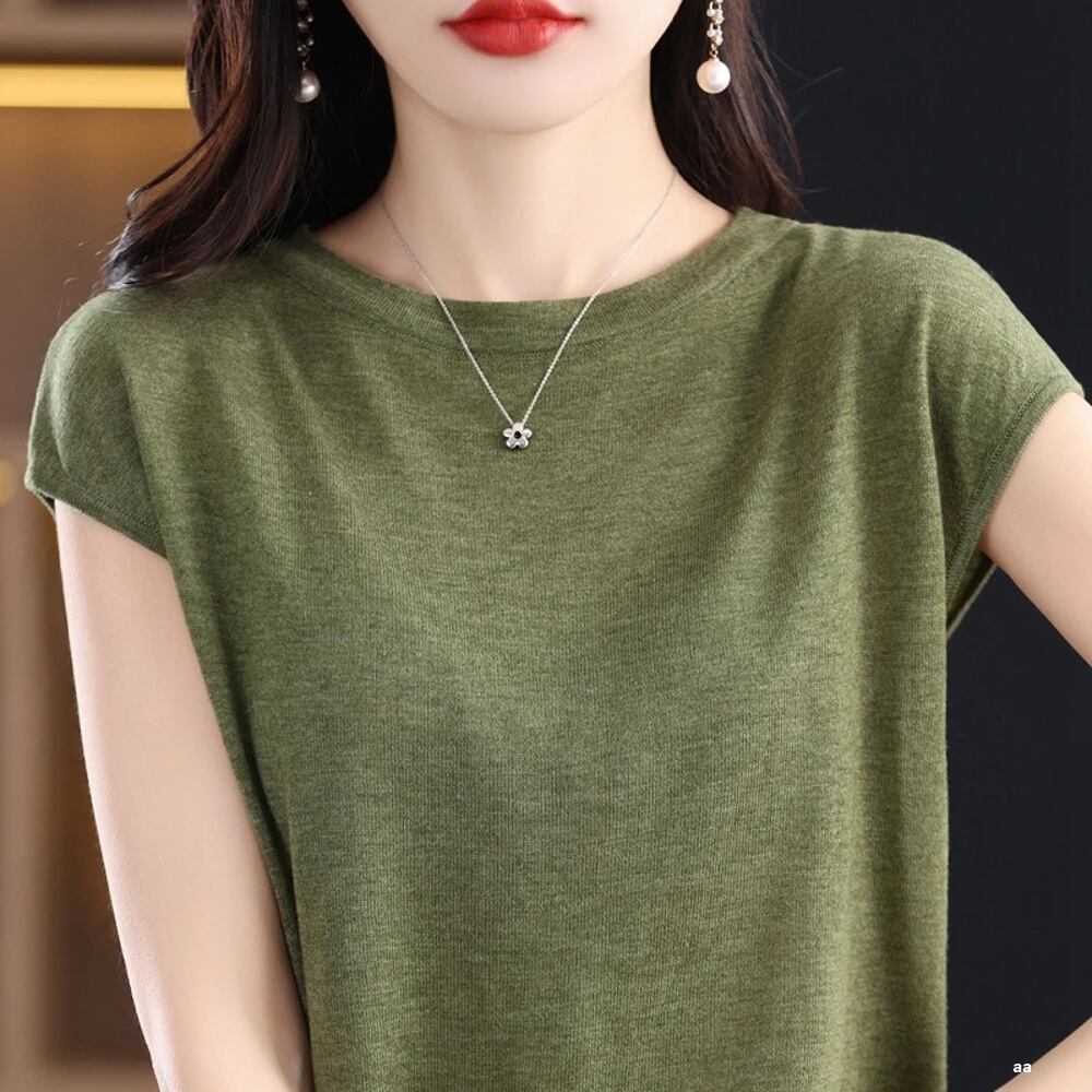 女性用メリノウールニットTシャツ,襟付きプルオーバー,半袖,キルティングウェア,無地,春,夏,新しいファッション,100%, 2024 ボトム ボトムス ズボン T240619142553_05 | coolcoool