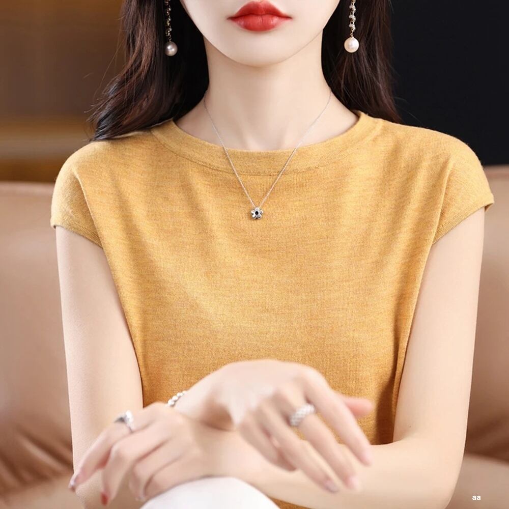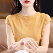 女性用メリノウールニットTシャツ,襟付きプルオーバー,半袖,キルティングウェア,無地,春,夏,新しいファッション,100%, 2024 ボトム ボトムス ズボン T240619142553_06 | coolcoool