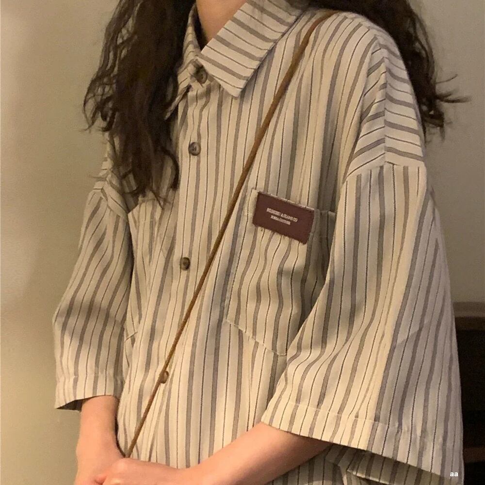 女性のための多用途スタイルの半袖ストライプシャツ,レトロ,カジュアル,ヴィンテージ,婦人服 ボトム ボトムス ズボン T240619142717_02