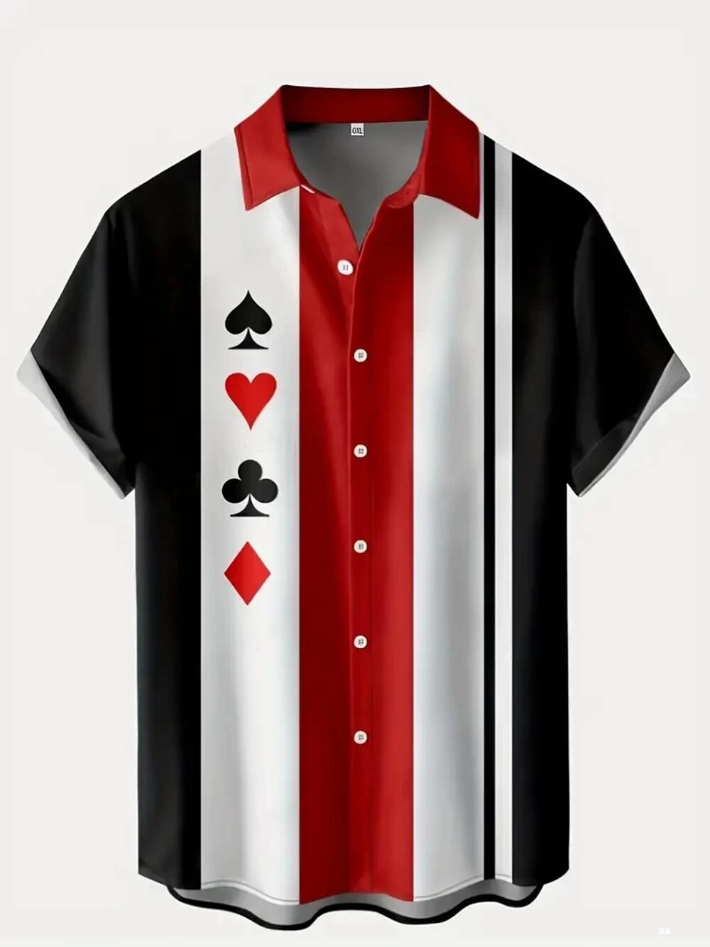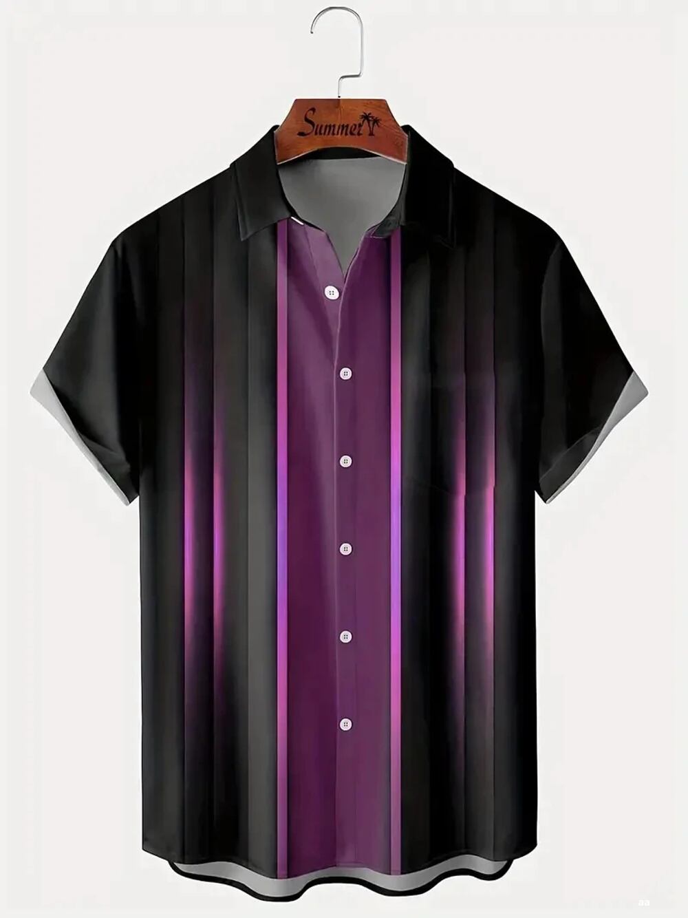ファッショントップス縞模様のパッチワークデザインプリントシャツデザイン男性女性半袖シャツボタンアップシャツトップス ボトム ボトムス ズボン T240619142829_03