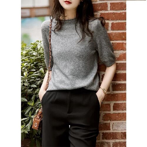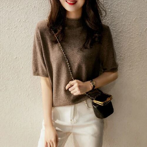 女性用ハーフタートルネックニットブラウス、ルーズトップ、エレガントな服、ハーフスリーブシャツ、サマーファッション