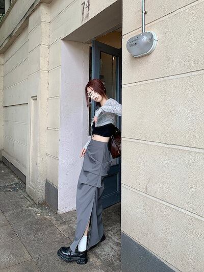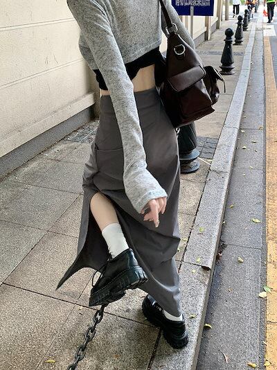 2024 春秋 スカート ロング丈 ポケット ハイウエスト マキシロング スカート ロング スカート 美脚効果 脚長効果 細見え 夏 おしゃれ かわいい サイド韓国系ファッション レディース お出かけ | coolcoool