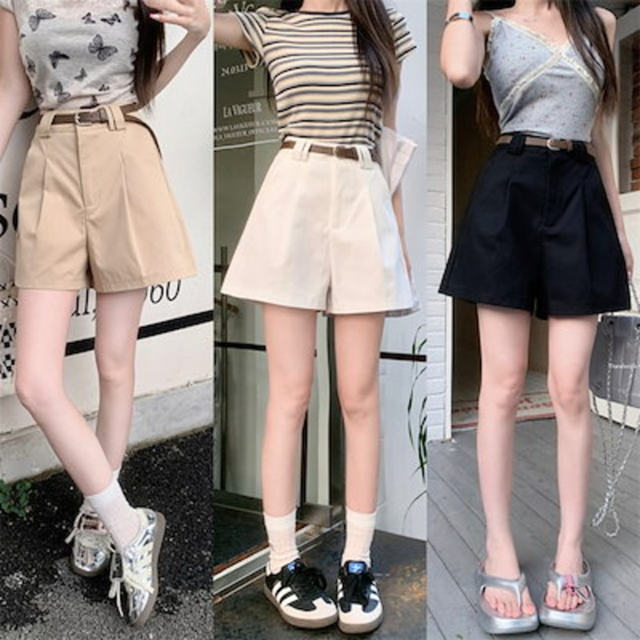 2024 春夏パンツ ショート丈 Aライン タック ワイド ゆったり ハイウエスト 美脚効果 脚長効果 細見え 夏 黒 白 茶色 カジュアル おしゃれ かわいい 韓国ファッション レディース お出かけ | coolcoool
