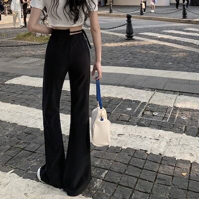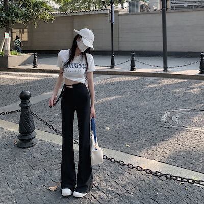 2024 春秋 パンツ モップパンツ ロングパンツ ワイド ハイウエスト 脚長効果 美脚効果 細見え 夏 カジュアルフィット かわいい 韓国系ファッションサイド レディース お出かけ1