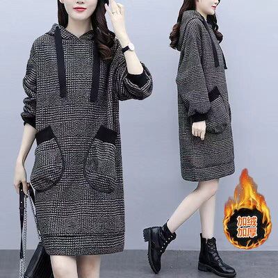 中綿入り厚手大きいサイズセーター 暖かい格子縞の冬のミッドレングスの緩い薄いファッショナブルなドレスの女性冬のワンピース