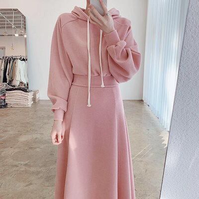 ピンクのスカートスーツ 女性の2024新しい春秋と冬の小さな人々外国糸セーターハーフ丈スカート2点セット冬のワンピース
