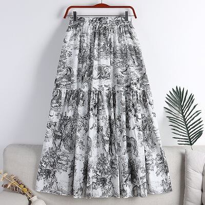 プリーツスカート 2024春夏新作ハイウエスト古代風水墨画プリントシフォンスカート ミディアム丈Aラインビッグスイング半身スカート