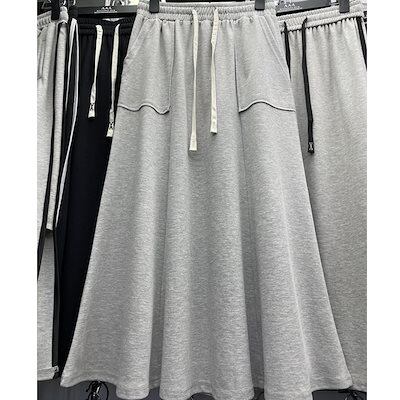プリーツスカート スウェットコットンスカート 2024年新作デザインAラインビッグスウィングスカート ウエストゴムミドル丈半身浴スカートカジュアルロングスカート