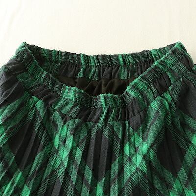 プリーツスカート レトロチェック柄コットン 2024 秋冬新作伸縮性ハイウエストミドル丈大振り半身スカート