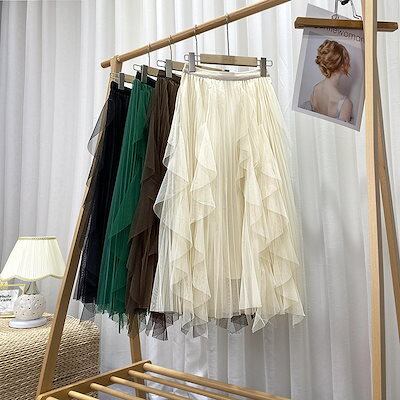 プリーツスカート レトロプリーツサロン 不規則な薄手のサブネット糸のスカート 2024 春の新作ミドル丈半そでスカート