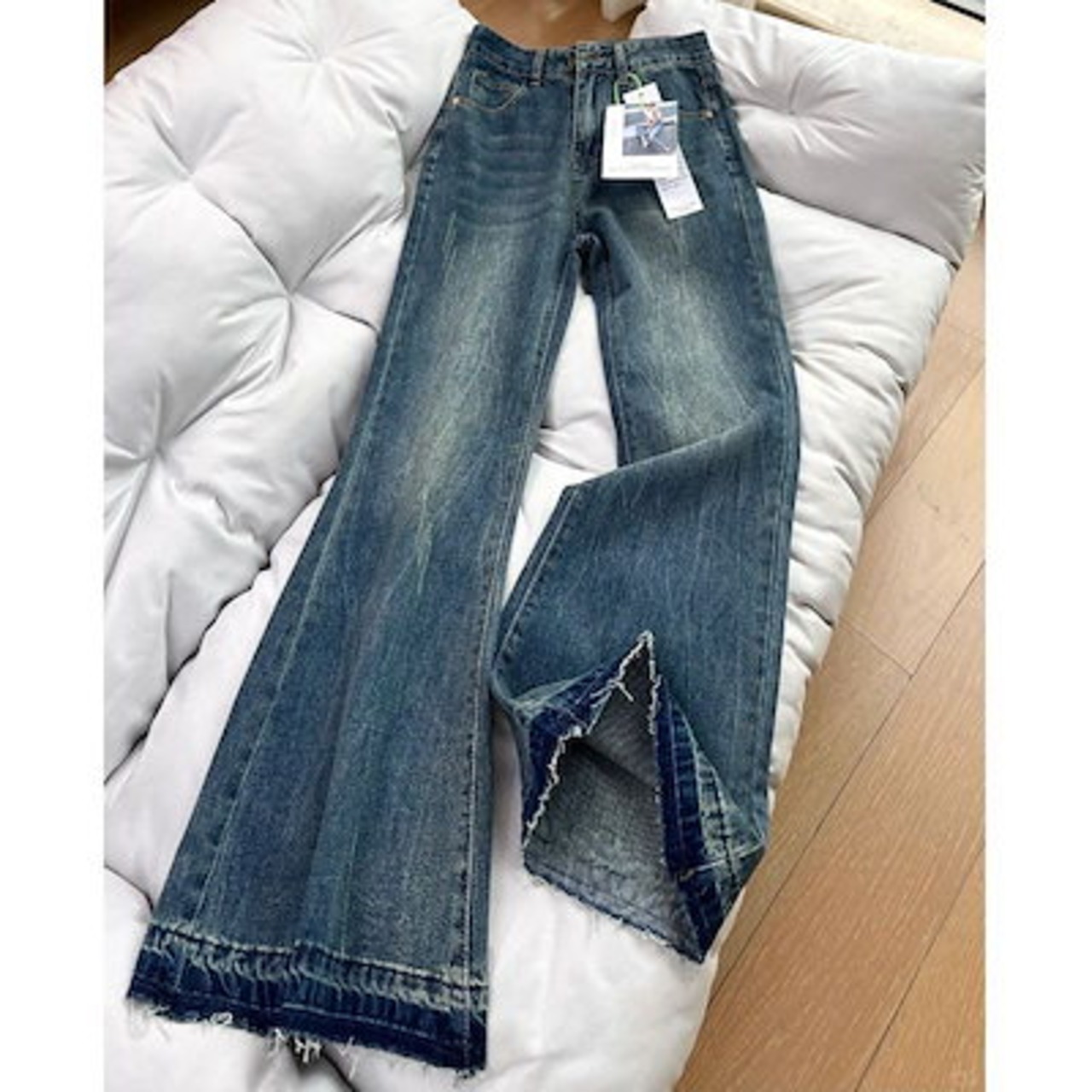 人気商品デニムパンツ ジーンズ レディース 韓国 ハイウエスト ストレート ワイドパンツ ゆったり 大きいサイズ 美脚 着痩せ ライトブルー 春 夏 秋 冬 四季
