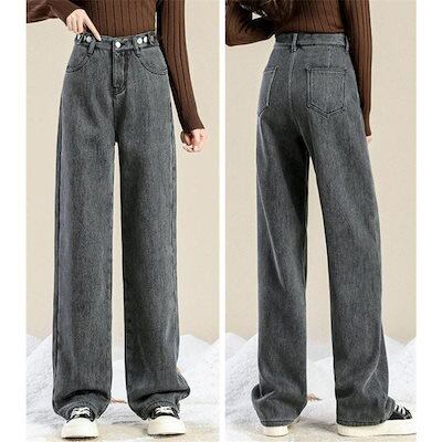 ロングパンツ 秋冬 裏ボア ボトムス 裏起毛 デニムパンツ ジーンズ レディース ワイドパンツ ハイウエスト