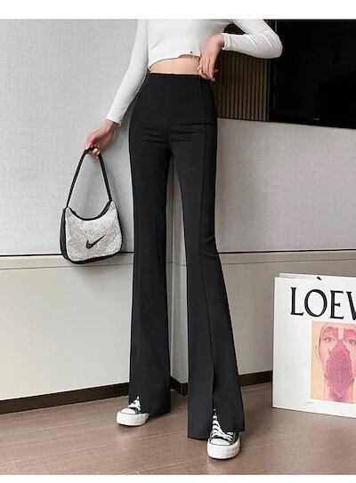脚長効果!スキニーパンツ2024春 夏の新作スリット カジュアルパンツ レディース ハイウエストスリム見え ドレープ感 アイスシルク オシャレ高級感 ロングパンツワイドパンツ