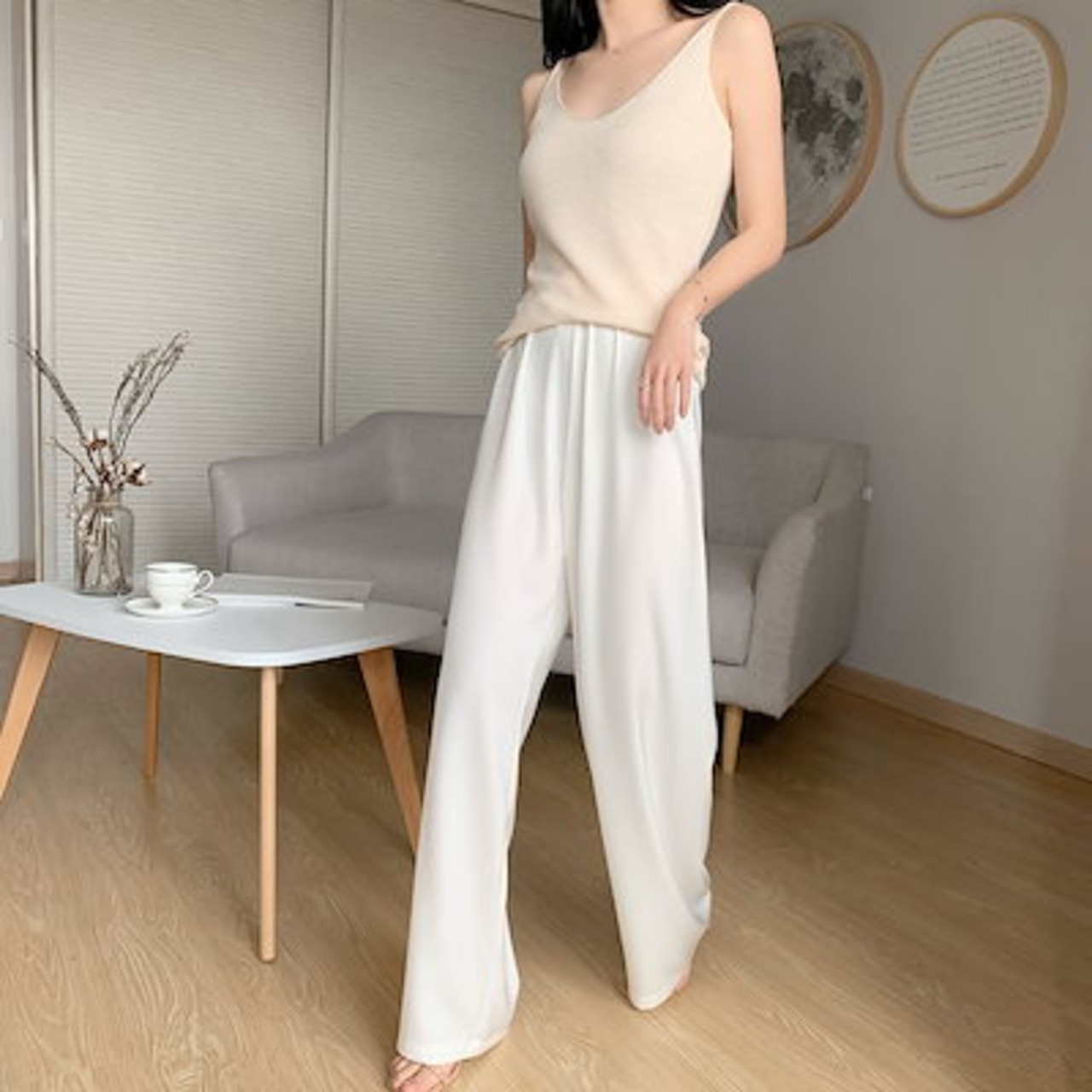 ショートパンツサテン ハイウエスト ドレープ感 モップパンツ アイスシルク ストレート 着痩せ ズボン ワイドパンツ