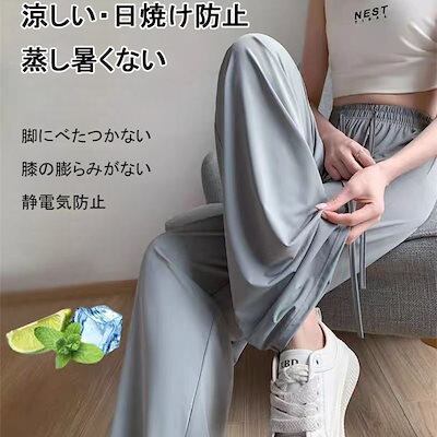 接触冷感夏の定番UPF50+レディースUV日焼け防止ズボントレンド 韓国ファッションウエストゴムパンツ ジョガーパンツロングパンツ スキニーデニムパンツ ひんやりボワイドパンツ | coolcoool