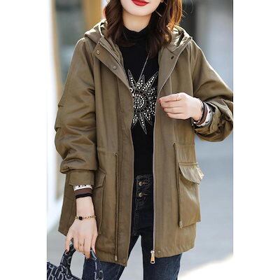 新入庫 パーカー 裏起毛 レディース オーバー フード付き 秋冬 コート 厚手 無地 大きい ゆったり 上着 中綿ジャケット 前開き