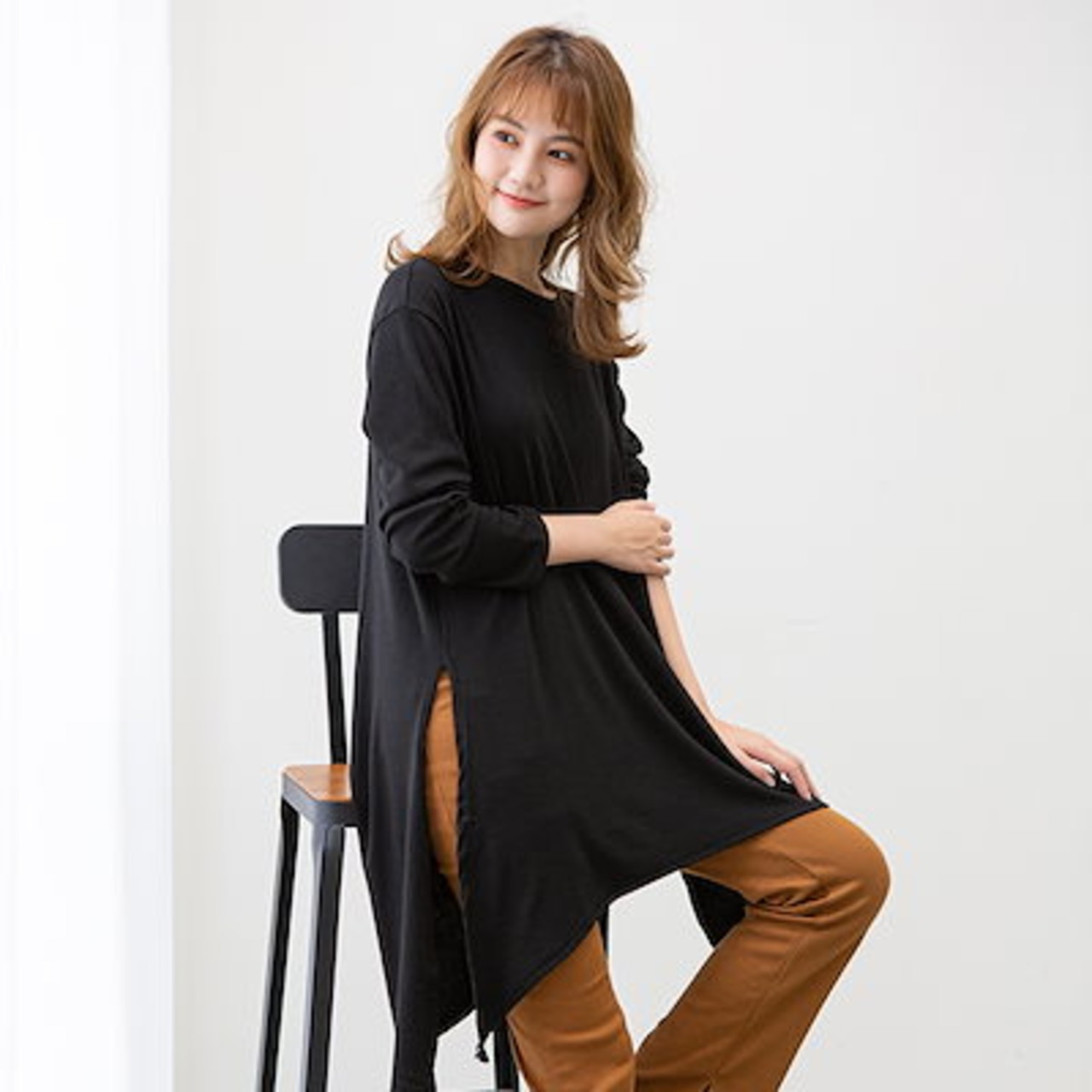 ロンT 新しい緩いビッグヤード長袖Tシャツレディースミドルレングスラウンドネック不規則なロングオープンTシャツ女性