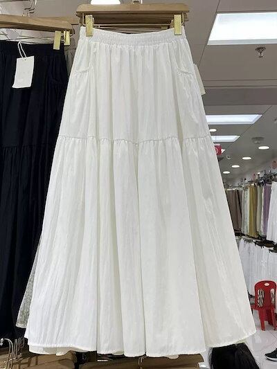 マキシスカート ウエストゴムビスチェスカート レディース 秋 スカート Aライン 大きいサイズ スイング ミドル丈スカート