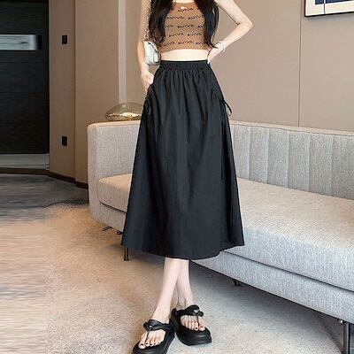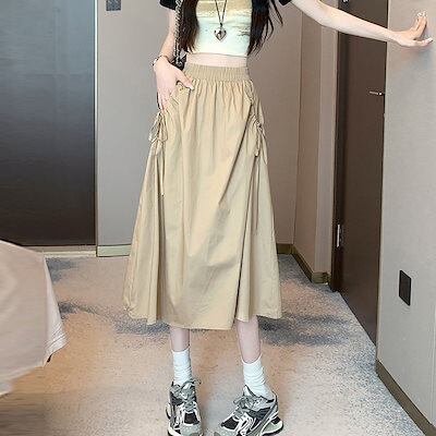 マキシスカート 夏のレースアップドローストリングワーク半身スカート女性2024新しい弾性ウエストミディアムレングスラインスカート