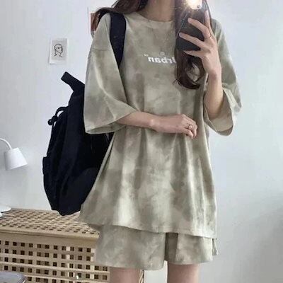 夏 涼しく楽ちんセットアップ 2024 セットアップ 半袖 ハーフパンツ 接触冷感 スウェット セットアップパンツルームウェア セットアップ ルームウェア セットアップ スウ