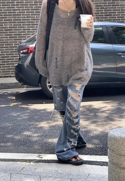 2024春夏 長袖 ニット プルトップスストリートカジュアエコルシルエットクルーネック加工色っぽ 女っぽ カジュアル 大人っぽ 上品 サイズフェミニンゆったりカジュアル レディースゆったり秋冬春 | coolcoool